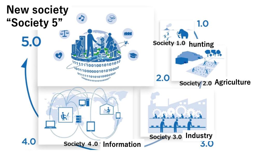 Awaji Island’s population decline is at the same rate as the rest of Japan, or perhaps even faster. Everyone is aware that addressing the declining birthrate and aging population may be Japan’s biggest challenge. The government is taking various measures to address this issue, including the introduction of AI and IT technologies to address issues arising from labor shortages and an aging population. This policy is known as the Society 5 Plan (model diagram below, taken from the Cabinet Office’s Science and Technology Policy). Representative examples include the idea that in order to care for the elderly in rural areas experiencing population decline, it is best to have people live in urban areas as much as possible, and the establishment of a digital communication network to quickly identify issues faced by elderly people living alone.